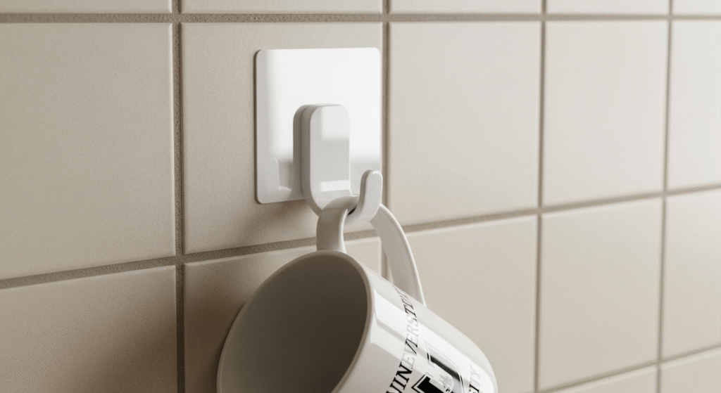 4. Adhesive Hooks & Holders: Use Your Walls Wisely
