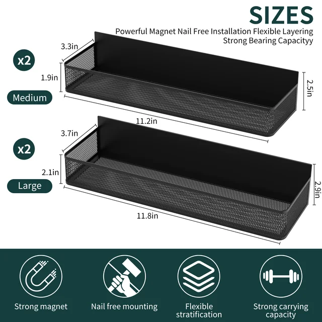 Get the strongest magnetic storage solution. This heavy-duty magnetic refrigerator shelf holds up to 6 lbs with its ultra-strong grip. Made from premium, rust-proof steel. Perfect for spices, oils, and more. No drills needed!