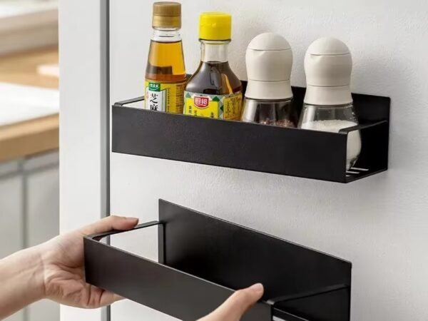 Instantly turn the side of your fridge into a pantry! This magnetic fridge organizer holds spices, oils, and paper towels with a powerful, scratch-free grip. No tools or drilling required. The ultimate space-saving hack for a tidy kitchen.