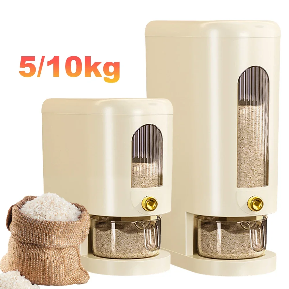 Upgrade your grain storage! This automatic rice dispenser features an airtight seal and a pest-proof design to keep food fresh. Get the perfect portion with a single press. Includes a measuring cup/strainer. Available in 5kg and 10kg sizes.