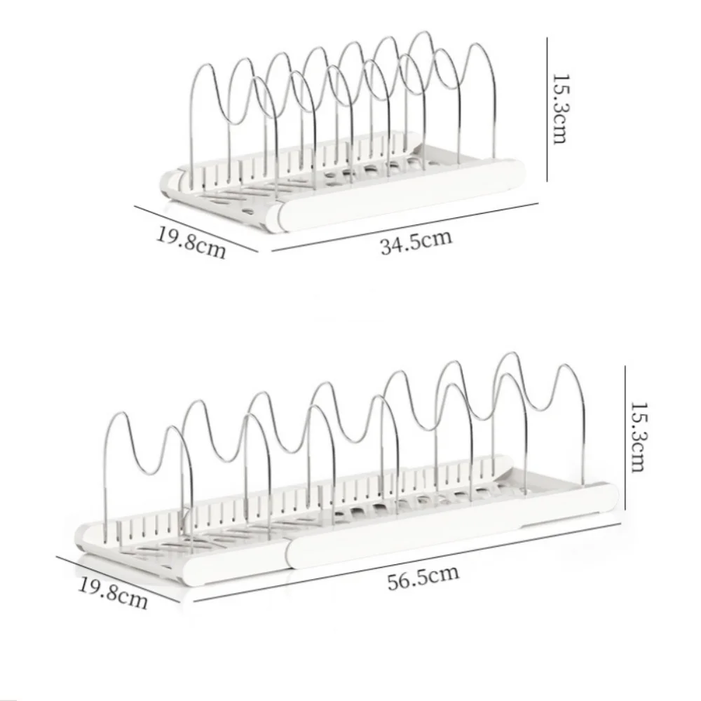 The Sorty™ Adjustable Cabinet Pot Rack is the ultimate solution to tame your cookware collection. This heavy-duty organizer creates a dedicated, upright slot for every single pot, pan, and lid, allowing you to slide out what you need in complete silence.
