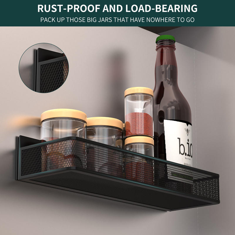 The ultimate fridge storage system! This 4-piece magnetic spice rack set includes shelves, a paper towel holder, and hooks. Features a super-strong grip and no-drill installation. The perfect, all-in-one solution to free up your counter space.