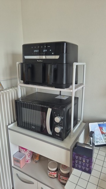 • Rock-Solid Construction: The frame is constructed from thickened, 16mm steel pipes, providing an incredibly sturdy and stable foundation. It’s designed to be “sturdy and stable like a mountain,” easily handling the weight of a microwave, coffee machine, or other heavy appliances without any tilting or deformation.