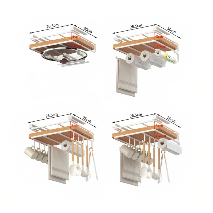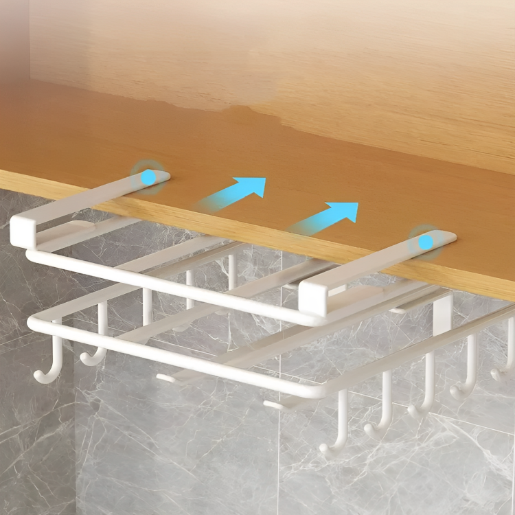Tired of clutter? Our slide-on under shelf organizer instantly creates storage for mugs, towels & more. This durable, drill-free rack is the effortless solution your kitchen needs. Get yours!