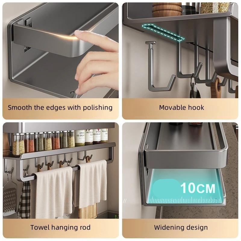 This wall mounted kitchen shelf is the ultimate solution for anyone craving a clean, modern, and clutter-free countertop. Stop letting spice jars, oil bottles, and utensils conquer your valuable workspace. It’s time to elevate your storage—literally.