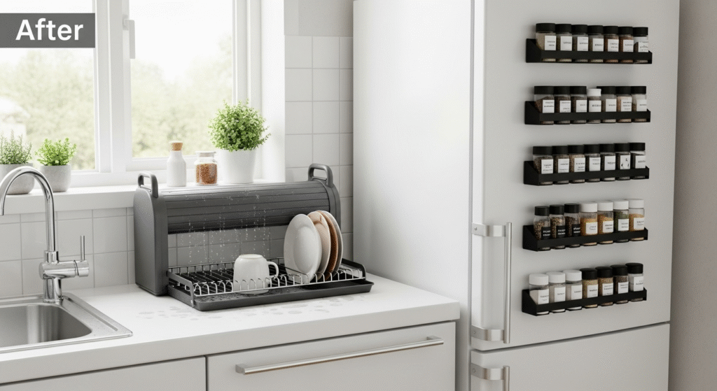 15. Think Multi-Function: Always ask: can this tool do more than one thing? A roll-up dish rack that’s also a trivet is a perfect example. Home experts at major sites like Forbes consistently praise multi-functional items as key for small spaces.